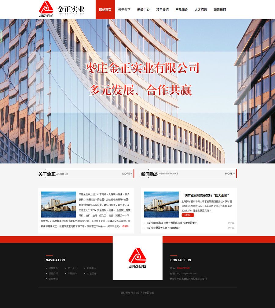 祝賀金正實(shí)業(yè)有限公司網(wǎng)站上線 公司介紹: 棗莊金正實(shí)業(yè)位于山東南部。處在京臺(tái)高速、京滬高鐵、津浦鐵路中間位置,距鐵路專用貨場(chǎng)5公里,距徐州觀音機(jī)場(chǎng)70公里,毗臨日照港、青島港、連云港三大出?,交通便利、快捷。 金正實(shí)業(yè)是集采礦、選礦、冶煉、煤化工、投資、貿(mào)易為一體不斷發(fā)展,已成為魯南地區(qū)較有影響力的大型企業(yè)。下設(shè)金正礦業(yè)、新疆雙全五洋能源、并參股伊犁特煤化工、新疆國(guó)投寶地能源等公司,F(xiàn)有職工3000余人,資產(chǎn)20億元。先后獲得棗莊百?gòu)?qiáng)企業(yè)、突出貢獻(xiàn)企業(yè)、誠(chéng)信經(jīng)營(yíng)企業(yè)、納稅十強(qiáng)企業(yè)、山東省工會(huì)工作先進(jìn)企業(yè)等榮譽(yù)稱號(hào)。 金正礦業(yè)年產(chǎn)鐵精粉60萬(wàn)噸,金正實(shí)業(yè)年產(chǎn)鑄造用生鐵26萬(wàn)噸,主要銷往江蘇、浙江、福建、安徽、河北、山東等地,深受廣大客戶好評(píng)。 公司始終秉承“多元發(fā)展、合作共贏”的經(jīng)營(yíng)理念,遵循“精誠(chéng)團(tuán)結(jié)、銳意進(jìn)取”的企業(yè)精神。竭誠(chéng)為客戶提供優(yōu)質(zhì)的產(chǎn)品和服務(wù)。真誠(chéng)歡迎各界同仁前來(lái)指導(dǎo)、合作,我們?cè)概c您風(fēng)雨同舟、攜手共創(chuàng)美好未來(lái)。 棗莊金正實(shí)業(yè)有限公司